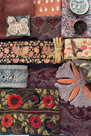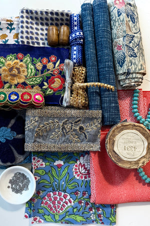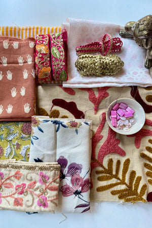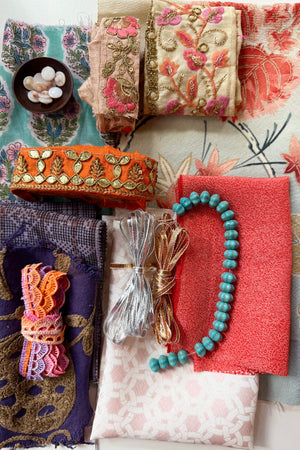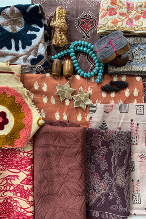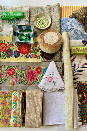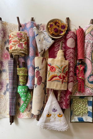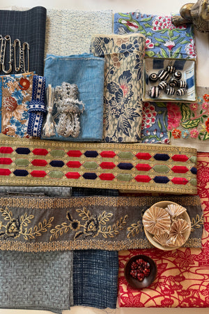 The makers shelf houses textiles, patterns, trims and gathered bundles - materials to begin with, return to, or keep close for when the time is right.