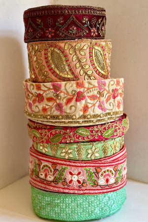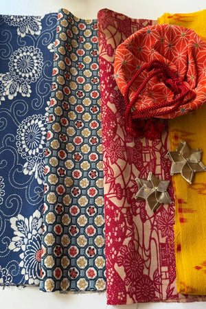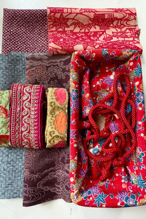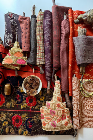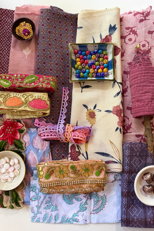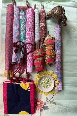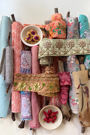 The makers shelf houses textiles, trims and gathered bundles - materials to begin with, return to, or keep close for when the time is right.